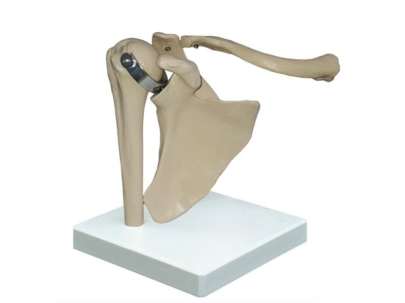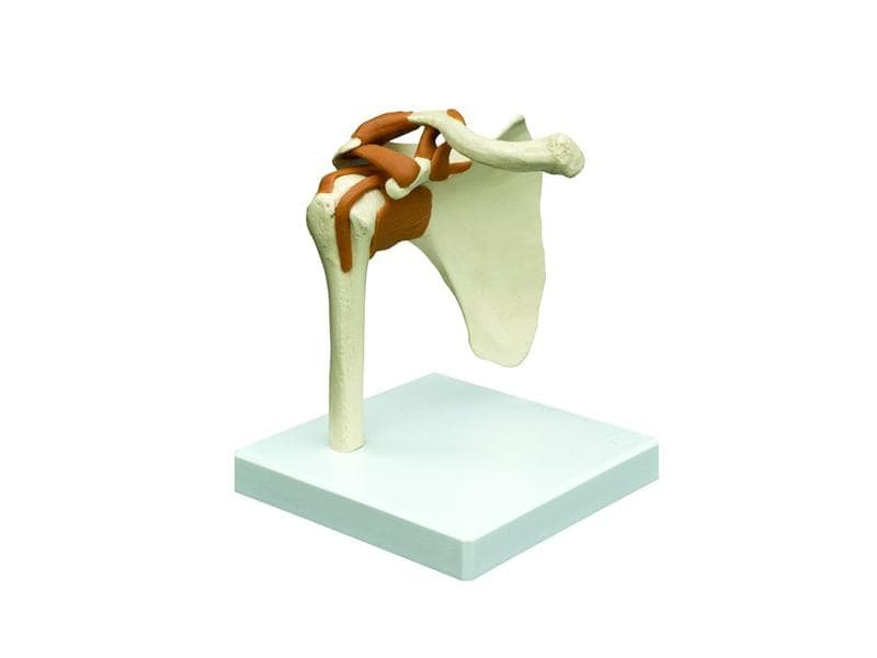 With our highly realistic functional model, the anatomy and mechanics of the shoulder joint can be illustrated very well. It is fully flexible. The life-size model shows the entire range of motion such as abduction, anteversion, retroversion, internal and external rotation. Consisting of shoulder blade, collarbone, joint ligaments and humeral stump.