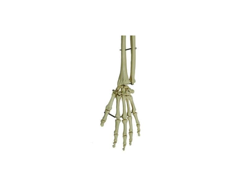 The skeleton with joint bands combines all the advantages of a Rüdiger skeleton. It is ideal for all demonstrations and medical lessons. All bones are 100% molded from a real homo skeleton. With this model, we have not only paid attention to ideal bone structures, but also to some anatomical features. For example, the skull has an impacted wisdom tooth in the lower jaw and an incabulum at the back of the head or the spine has a malposition of the Os coccygis. It is equipped with the flexible joint ligaments on the shoulder, elbow, hip, knee, hand and foot on the right side of the skeleton.
