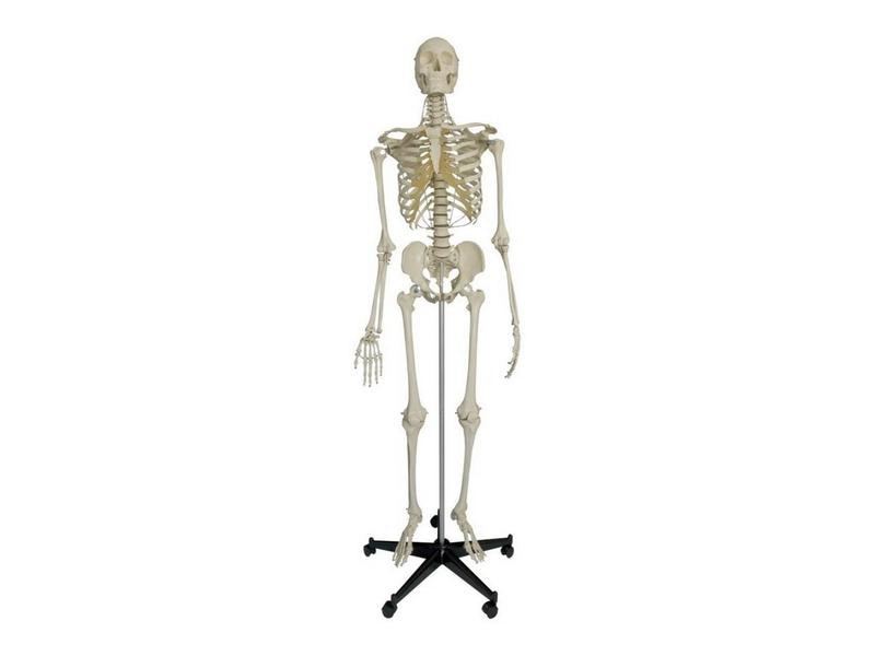 A skeleton that can withstand almost any strain, which is why it comes with a 30-year guarantee on stability! The Rüdiger skeletons achieve the highest level of detail through elaborate manufacturing. Exact replica of a perfect real skeleton with ideal bone structures. Made from particularly strong special anatomical plastic, which has similar properties to natural bone material (weight, strength, etc.).
