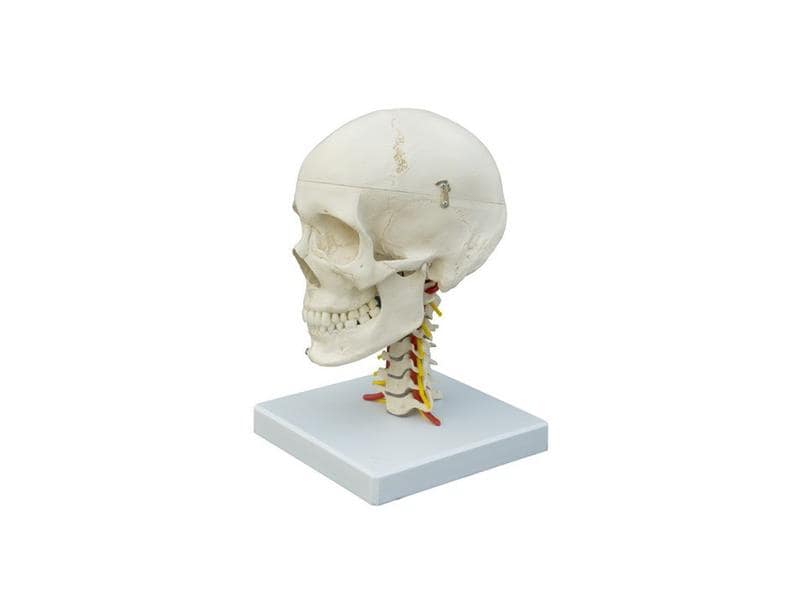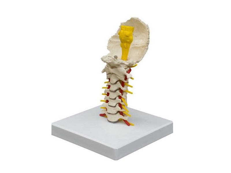 The Rüdiger cervical spine is a lifelike cast of a human cervical spine. It is flexible and equipped with occipital bone, arteries, spinal cord of the brain stem and nerve cords.