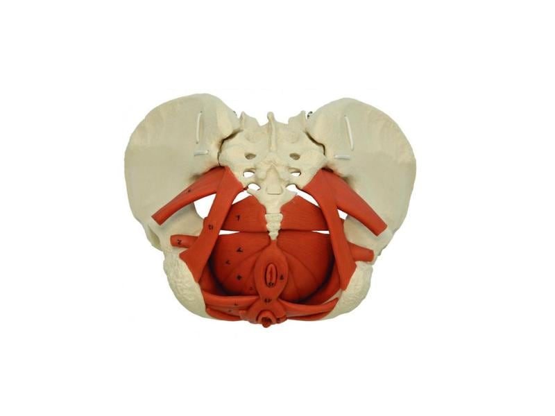 High-quality model of the female pelvis with flexible pelvic blades and pelvic floor muscles. Not removable, but flexible with flexible pelvic assembly. All important muscles of the pelvic floor are shown. Enables sliding and rotating movements between the pelvis and sacrum. With numbering and description.