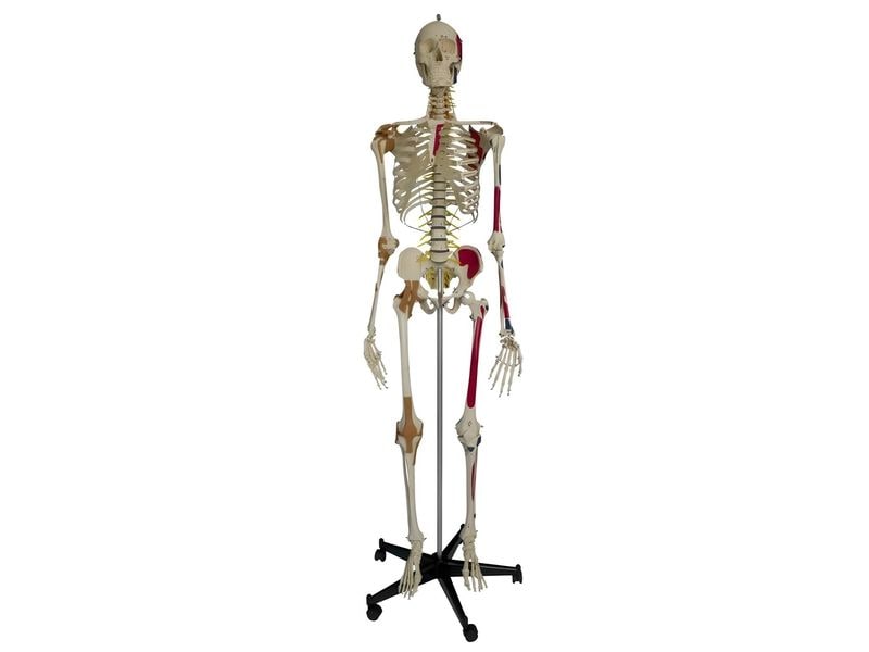The Rüdiger skeletons achieve the highest level of detail through elaborate manufacturing. Exact replica of a perfect real skeleton with ideal bone structures. Made from particularly strong special anatomical plastic, which has similar properties to natural bone material (weight, strength, etc.).