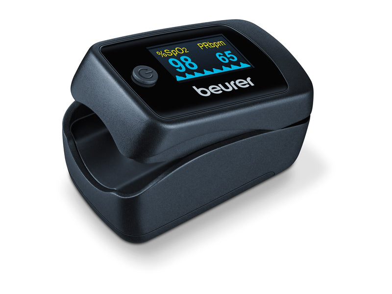 L'oxymètre de pouls PO 35 de Beurer se distingue par son utilisation simple et totalement indolore. Grâce à son format compact, il peut être utilisé aussi bien à la maison qu'en déplacement.