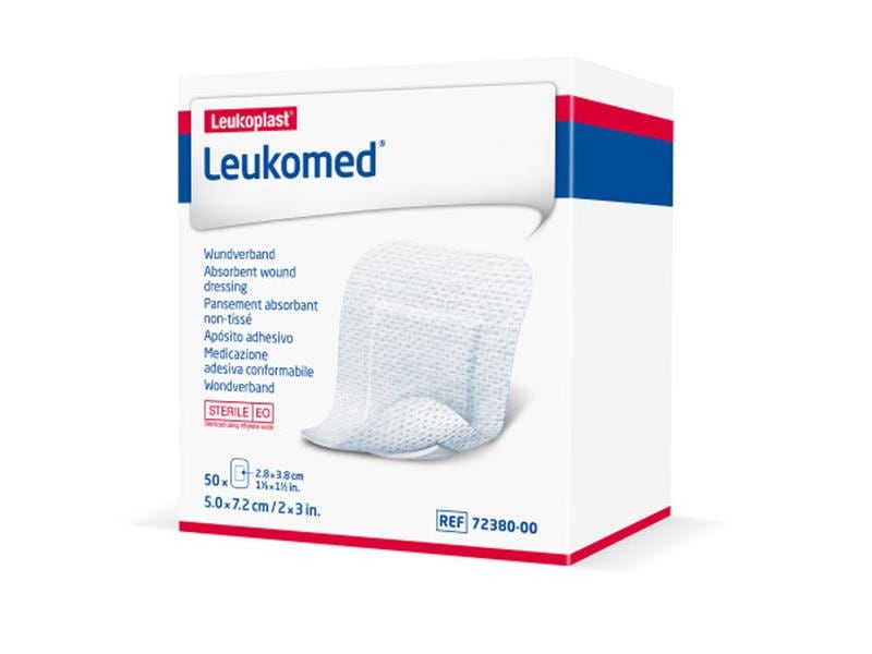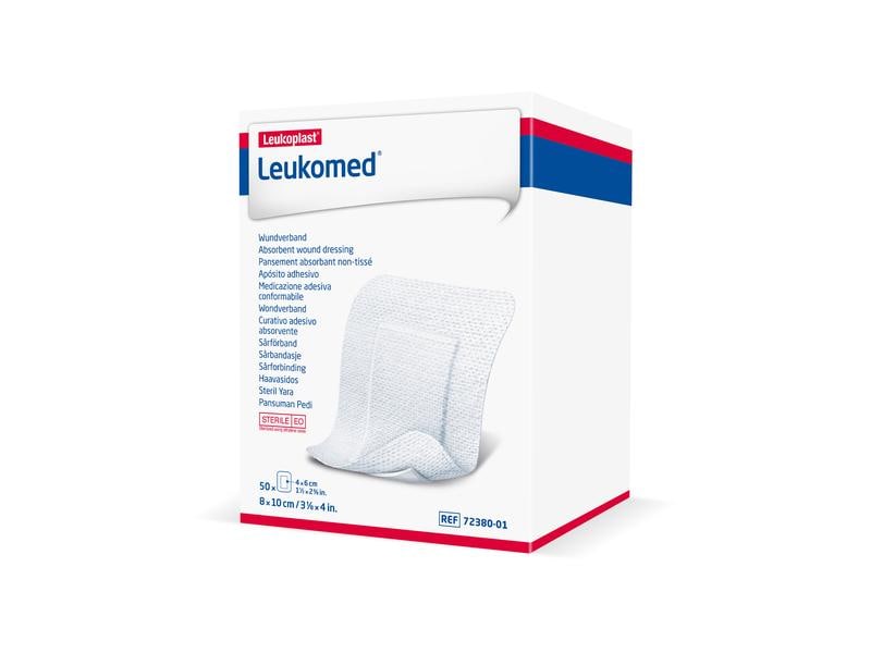 Leukomed est un pansement stérile destiné à couvrir les plaies chirurgicales et les blessures accidentelles. Le pansement s'adapte très bien aux parties du corps. Le pansement absorbant est composé d'un non-tissé en viscose et est recouvert de polypropylène. Ainsi, la plaie n'adhère pas et un changement de pansement peu douloureux est possible. Comme le pansement est perméable à l'air et à la vapeur d'eau, le risque de macération de la peau est réduit.