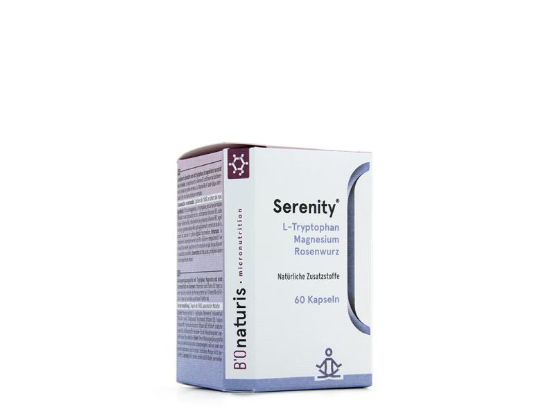 Serenity est un complément alimentaire contenant du tryptophane, un acide aminé précurseur de la sérotonine. Il contient également du citrate de magnésium, qui contribue à une fonction psychique normale. Utilisation : 2 gélules à partir de 16h00, en dehors des repas.