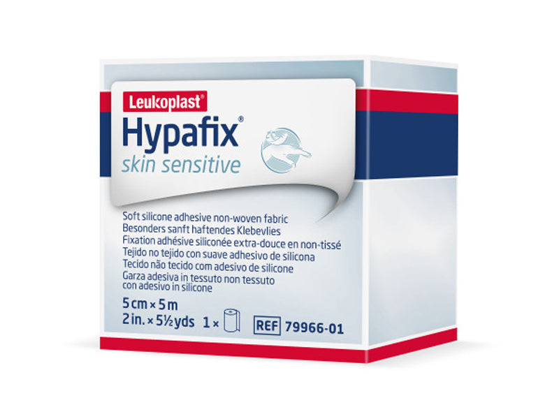 Le Medical Hypafix Skin Sensitive est un non-tissé adhésif très doux, spécialement conçu pour une fixation sûre des pansements primaires sur les peaux sensibles et fragiles. Grâce à ses propriétés hydrofuges et à son support adhésif à base de silicone, il garantit une fixation fiable sans irriter la peau ni l'endommager lorsqu'il est retiré.