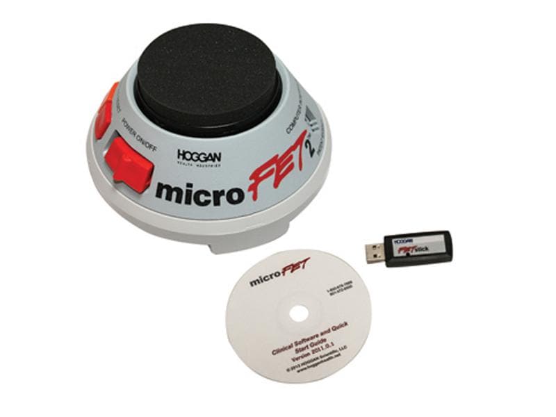 Le MicroFET 2 est un appareil précis et portable de mesure et de contrôle de la force (FET). Il a été spécialement conçu pour fournir des mesures musculaires objectives, fiables et quantitatives. Le MicroFET 2 aide au diagnostic, au pronostic et au traitement des maladies neuromusculaires et musculo-squelettiques. L'utilisation de la technologie numérique la plus récente permet d'atteindre un haut niveau de précision. Les capteurs de tension dans le transducteur réagissent indépendamment les uns des autres pour mesurer les forces externes sous différents angles. Ce système breveté permet à l'instrument de mesure de détecter les changements de force, même minimes, quelle que soit la direction dans laquelle la force est exercée. Les données de mesure sont affichées sur deux écrans LCD - force de pointe et temps de fonctionnement/secondes.