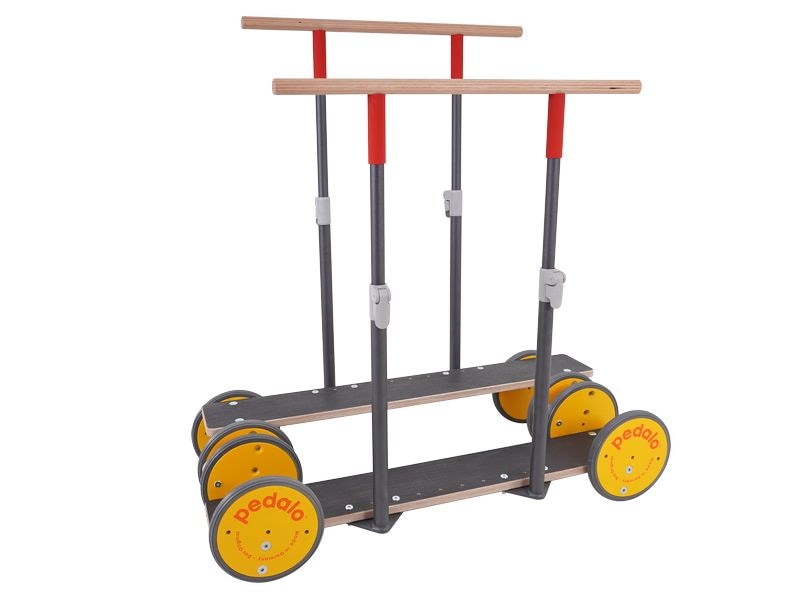 Le pédalo assure un succès durable dans le cadre de la rééducation et de la thérapie pour Il ne motive pas seulement les pratiquants, mais leur pour aussi plus de confiance en eux. Les rampes d'arrêt réglables en hauteur donnent de la sécurité à l'utilisateur et sont agréables à saisir. La hauteur des barres d'appui peut être réglée en fonction de la taille de l'utilisateur. Avec le Reha-Bar S de Pedalo, la distance entre les roues permet une position plus large et plus sûre. Dans le cadre de la thérapie, ces aspects de sécurité pour plus de plaisir, de joie et de progrès dans les exercices ! Domaine d'utilisation L'équipement du Pedalo-Reha-Bar S est adapté aux exigences de la rééducation et de la thérapie. Les entretoises entre les roues garantissent une assise large et sûre sur les marchepieds de 100 cm de long et offrent suffisamment d'espace de mouvement entre les rampes de maintien télescopiques réglables en hauteur vissées. Maintes fois éprouvé et évalué positivement dans les établissements thérapeutiques, de santé et de fitness pour le traitement de : troubles importants de l'équilibre, faiblesse des muscles des jambes, hémiplégie légère, hémiplégie légère après un accident vasculaire cérébral, après des opérations, surtout au niveau des genoux et des hanches, pour spastiques même sans fonction de station debout, personnes en fauteuil roulant avec des forces résiduelles Exemple d'attaque cérébrale Après un accident vasculaire cérébral, il peut arriver que le patient ne soit plus en mesure d'enchaîner les pas. De plus, la perception est tellement altérée que le patient ne peut pas non plus sentir à quoi ressemble une séquence de mouvements, bien qu'il sache à quoi cela doit ressembler. Le thérapeute peut alors aider à résoudre tous ces problèmes. Il se place avec le patient sur les marchepieds et commence à le faire rouler. Le patient redécouvre ainsi ce qui n'était plus possible auparavant. Pour renforcer les muscles des jambes dans leur fonction, le patient peut par exemple utiliser une de nos bandes de résistance Pedalo et la fixer aux supports ou au corps. Mouvement guidé, simple, isolé, linéaire dans une amplitude de mouvement réduite ! Pas pour pas vers la santé. Capacité de charge Jusqu'à 120 kg.