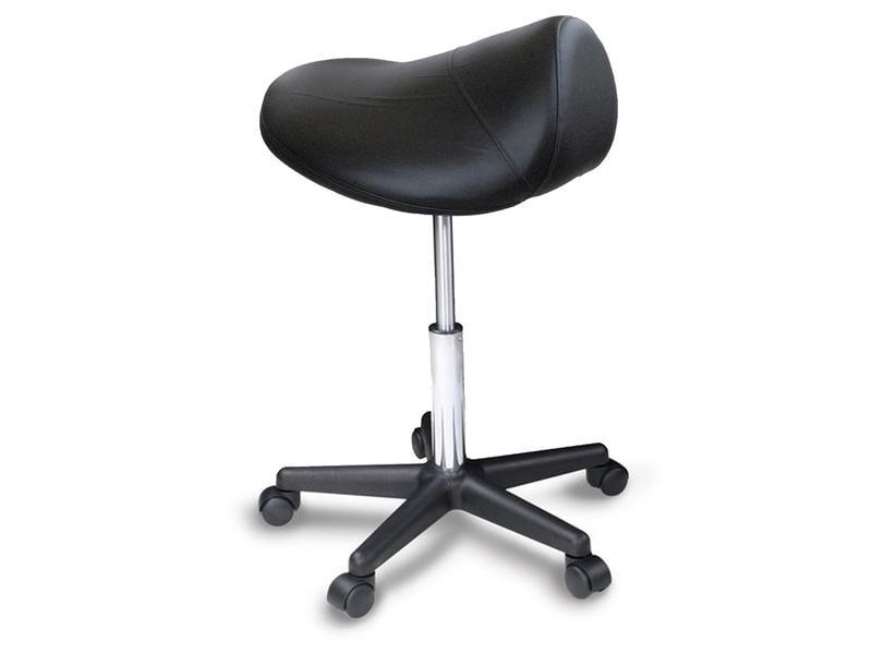 Le tabouret de selle Galaxy Montane est très stable avec un alliage chromé. Il peut supporter jusqu'à 150 kg et s'adapte à tous les cabinets. Les roulettes de transport sont caoutchoutées et l'inclinaison est réglable. Réglage en hauteur de 50 à 70 cm.