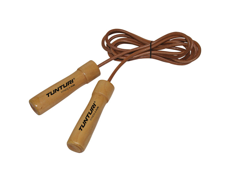 Sauter à la corde n'est pas seulement très amusant, c'est aussi très fatigant et permet de brûler des calories. Cette corde à sauter Tunturi est composée de solides poignées en bois avec roulements à billes intégrés et d'une sangle en cuir.