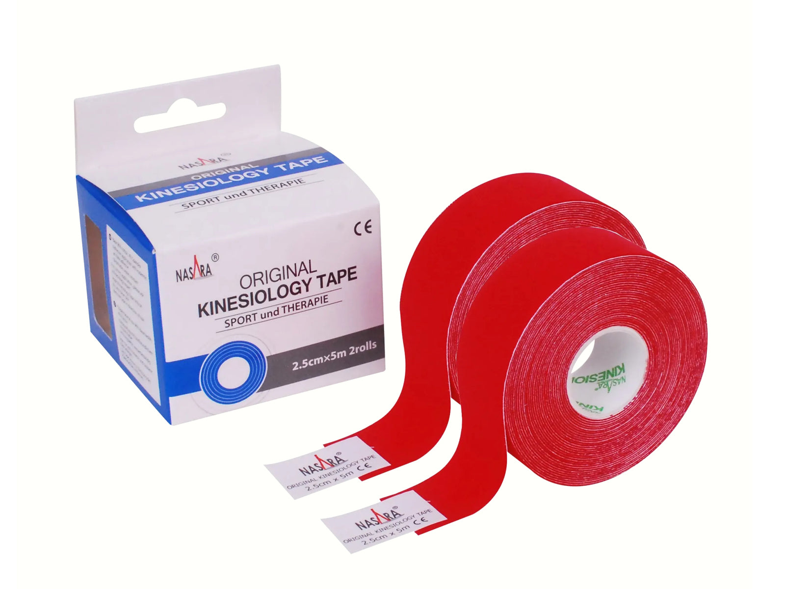 Bande kinésiologique NASARA 2,5 cm 5 m - 2 rouleaux rouges